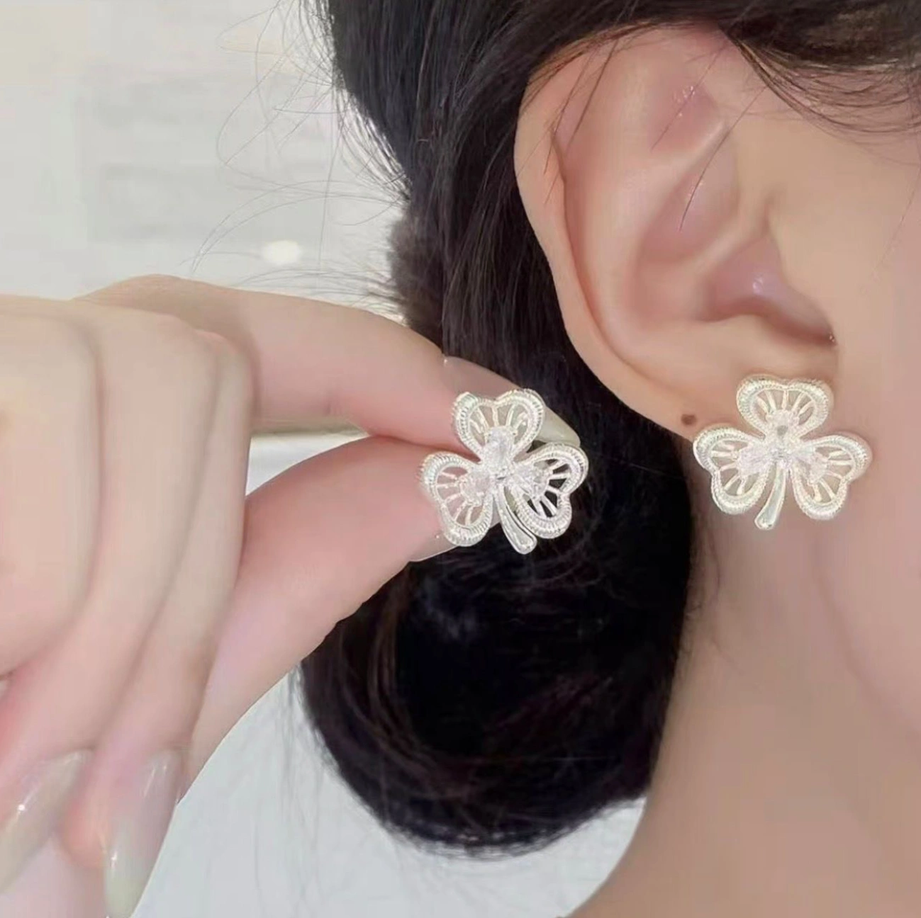 3 leaf silver earring