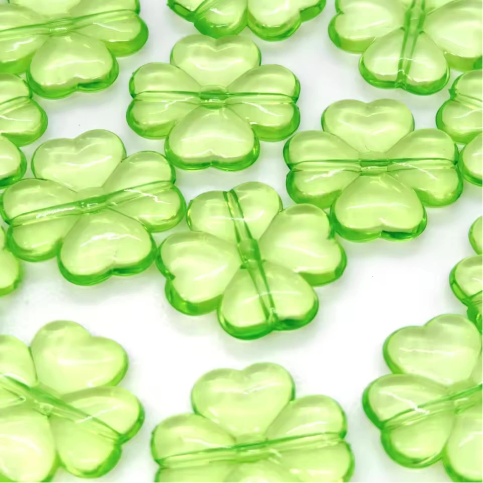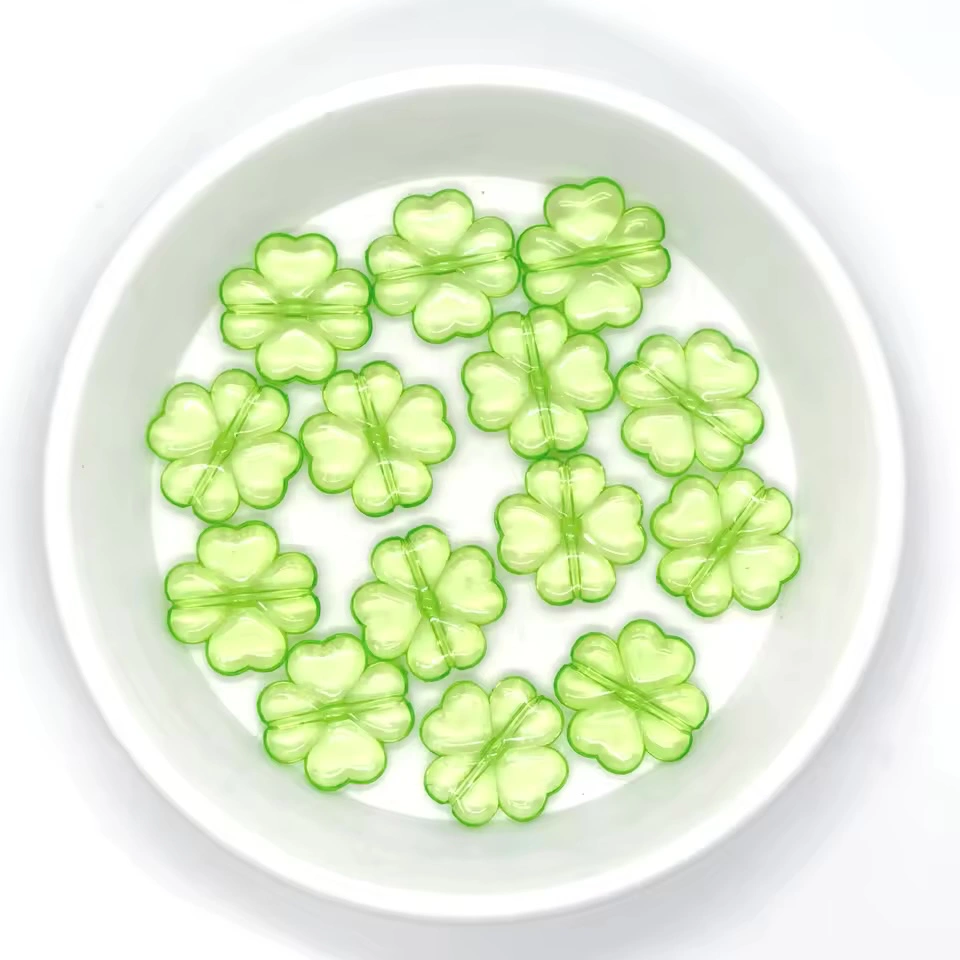 10pcs Lucky green transparent large four-leaf clover shape perforated acrylic beads for DIY
