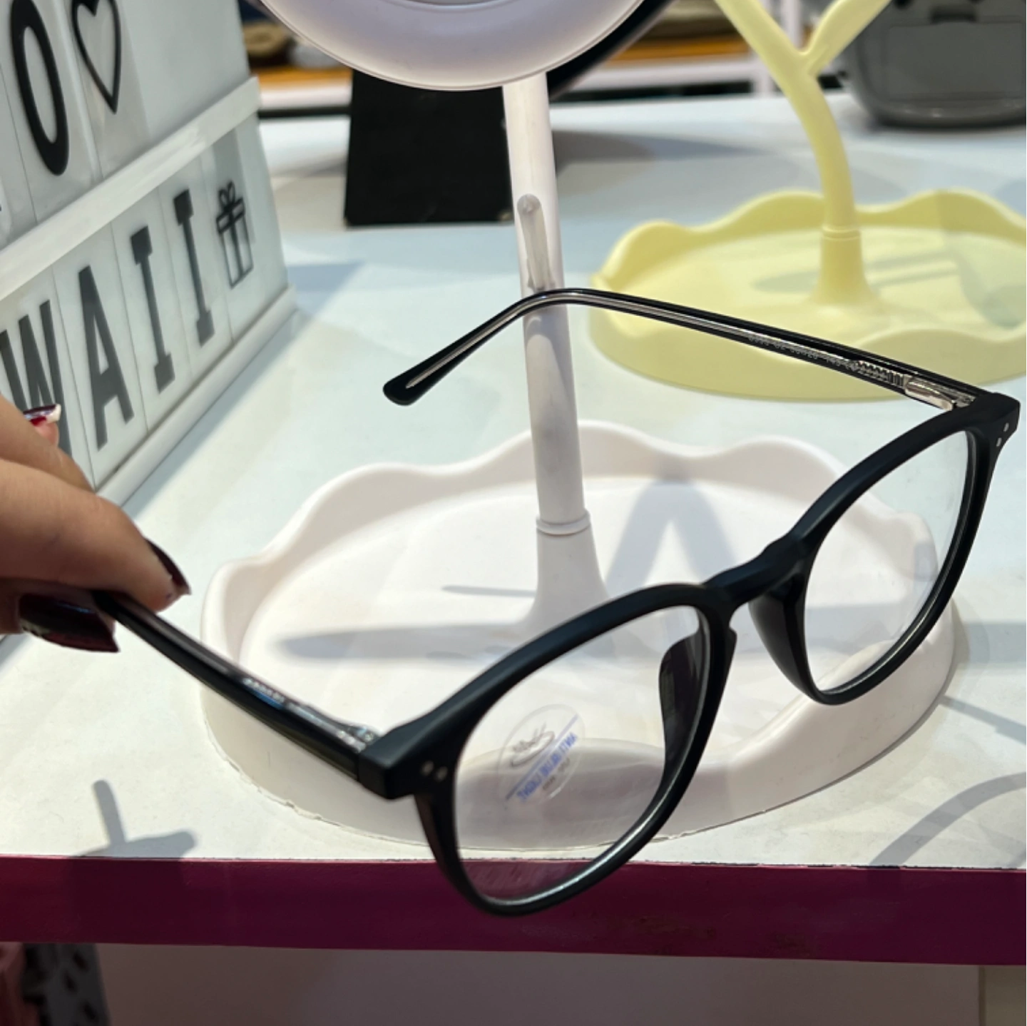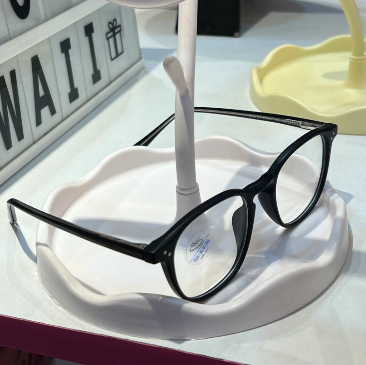 Light pink frame glasses