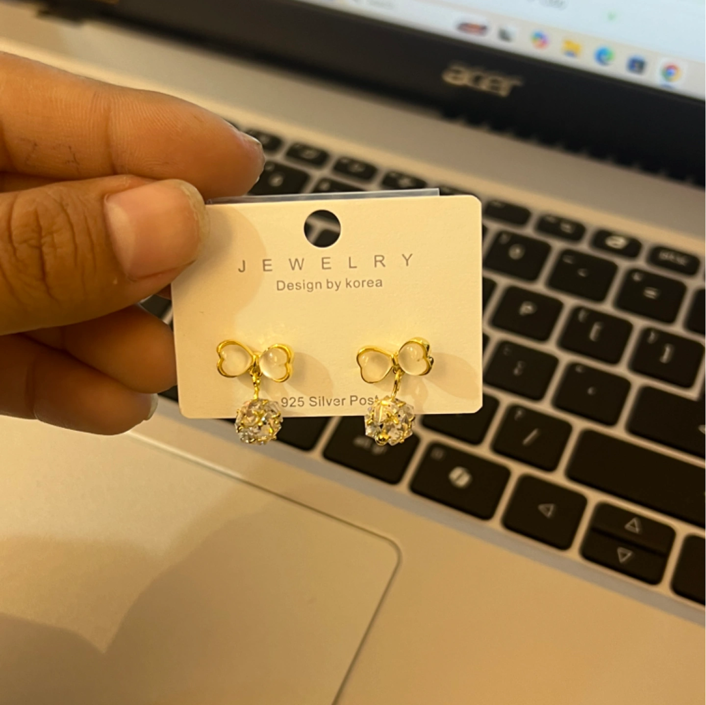 Bow dangle gold earring