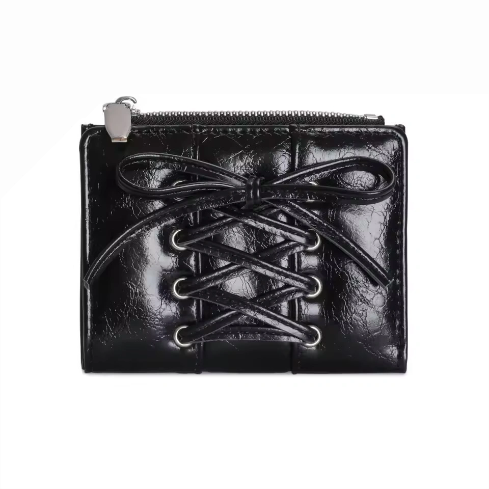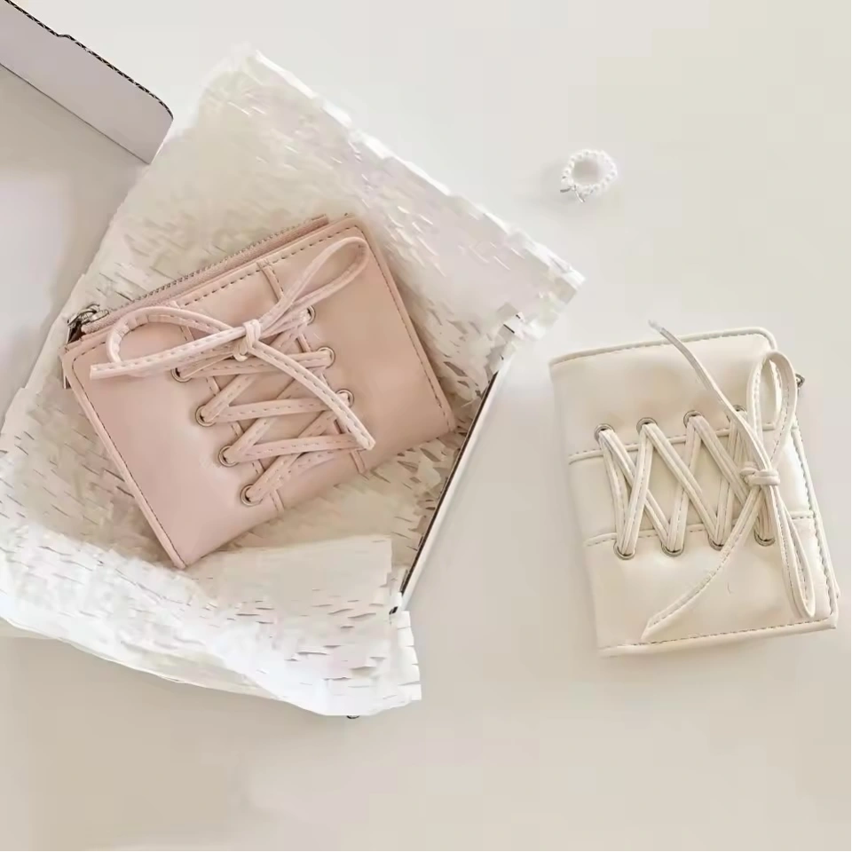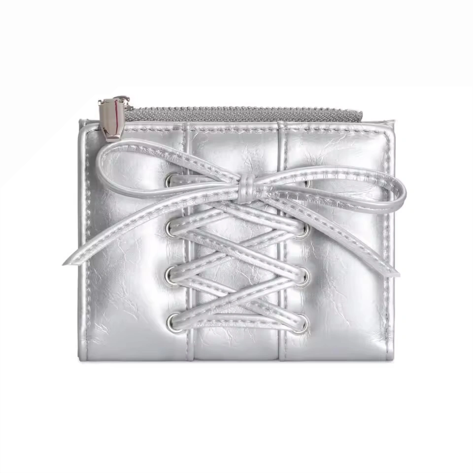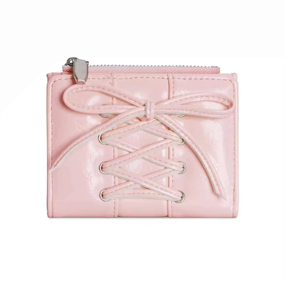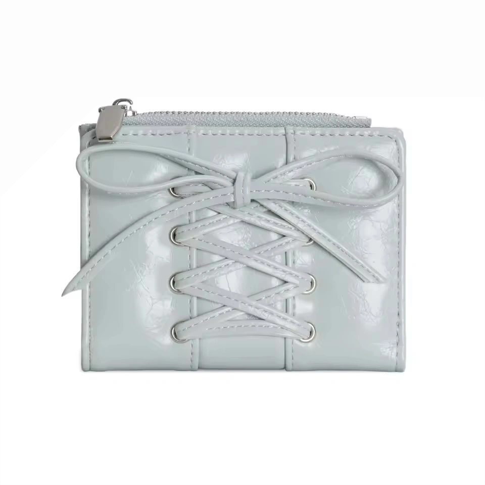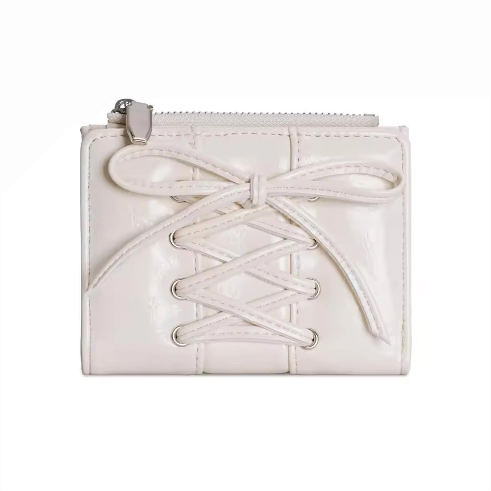Simple Korean Style Bow Wallet Ultra Thin Purse Card Bag Short Clutch Card Holder Coin Pouch Travel