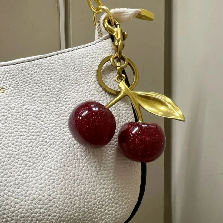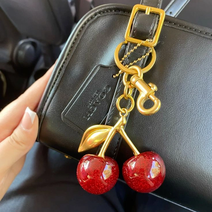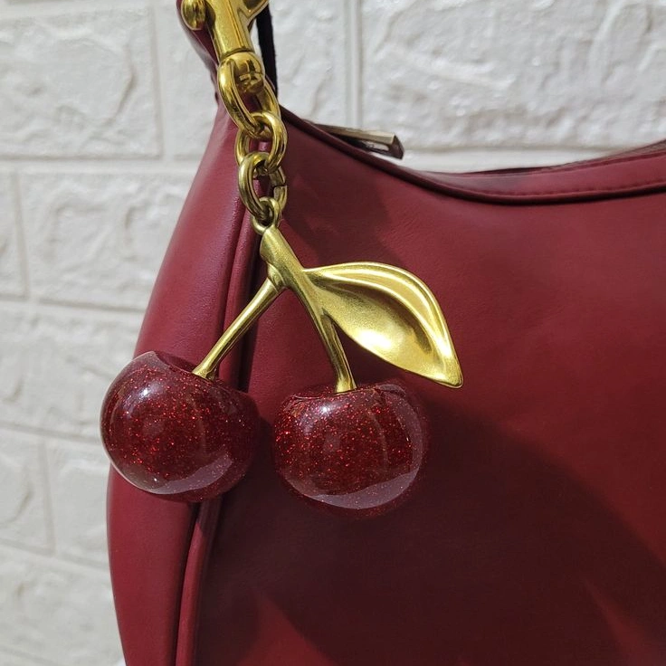 🌟 Featuring vibrant red cherries paired with a luxurious gold leaf, this charm is the perfect statement piece to enhance any handbag. 🍒✨ Ideal for fashion enthusiasts looking to add a unique and eye-catching detail to their look. Upgrade your style game with this chic and trendy cherry bag charm today!