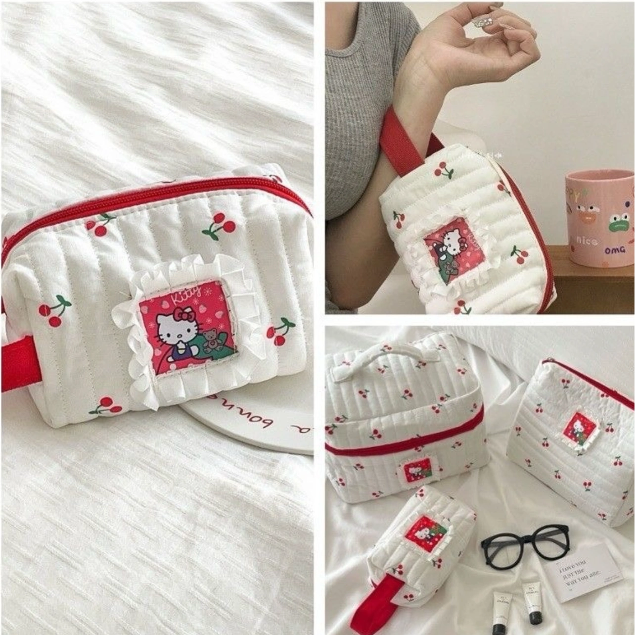 Kawaii cherry/hello kitty makeup/pencil pouch✨