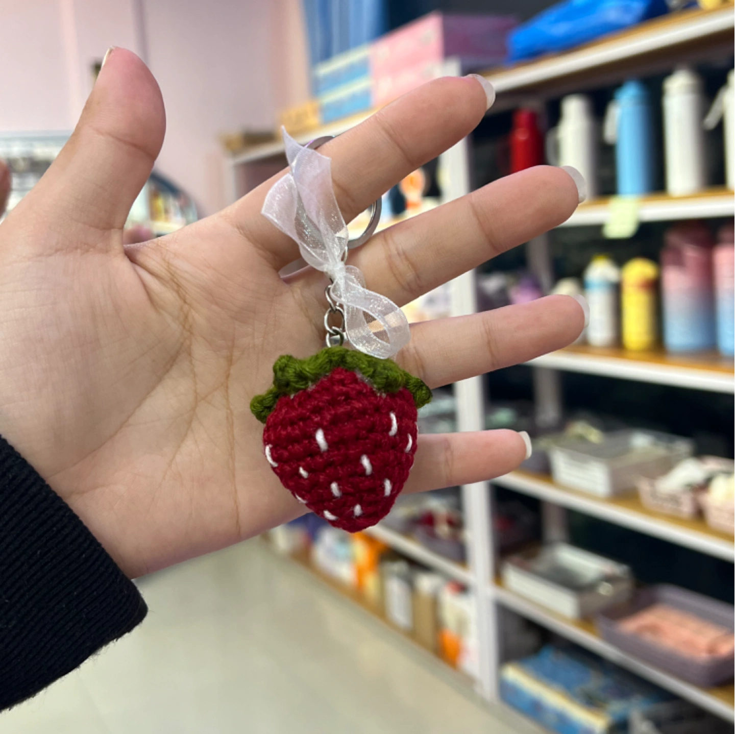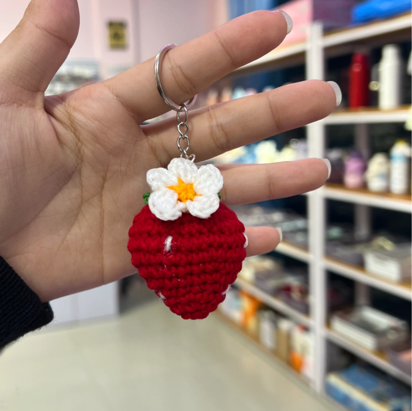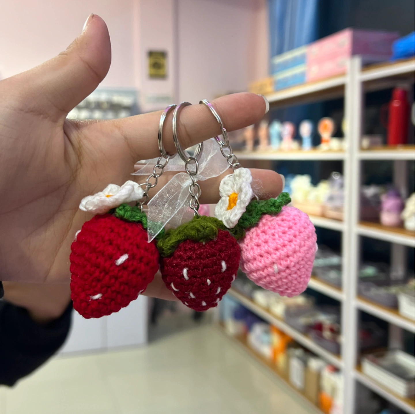 Kawaii crochet strawberry keychains