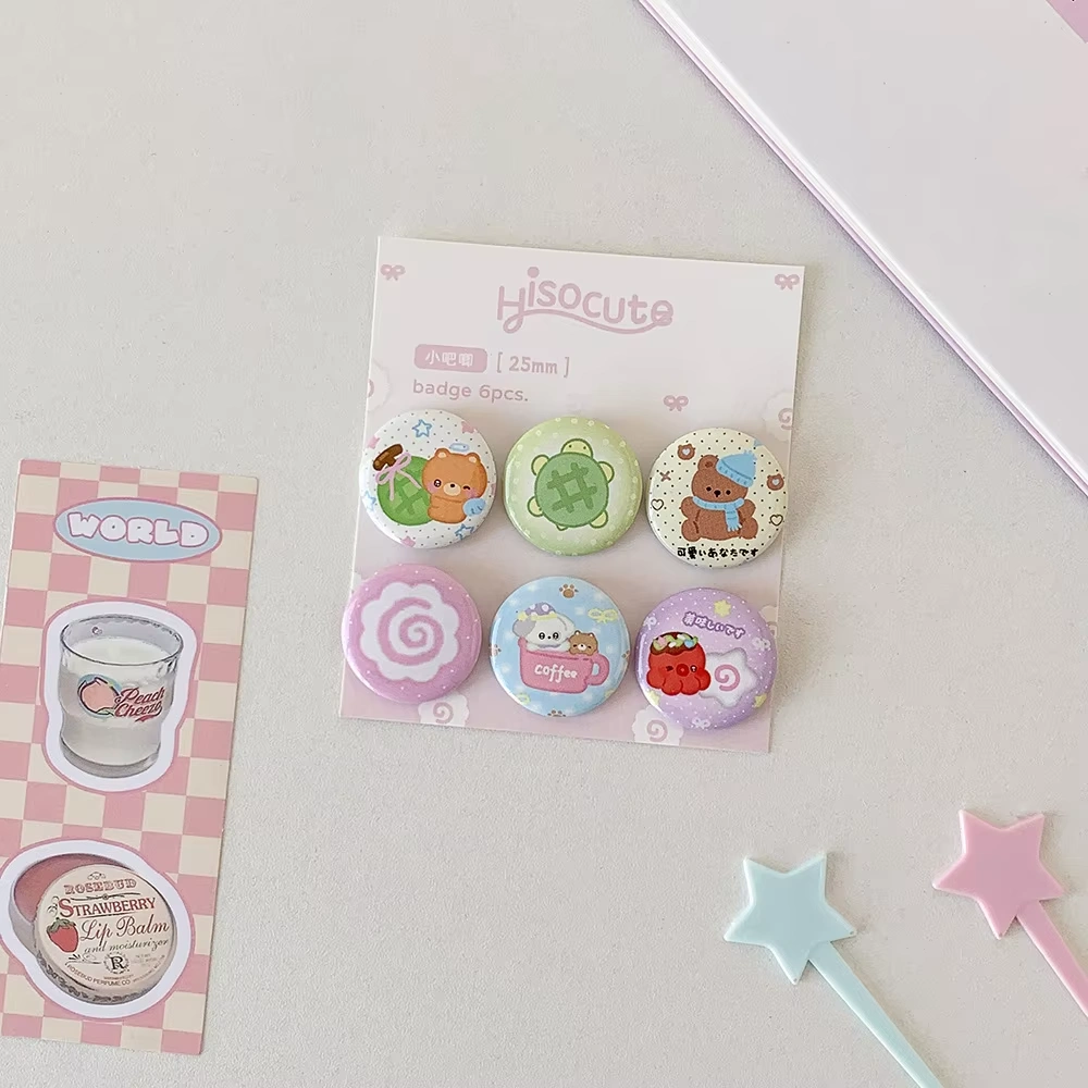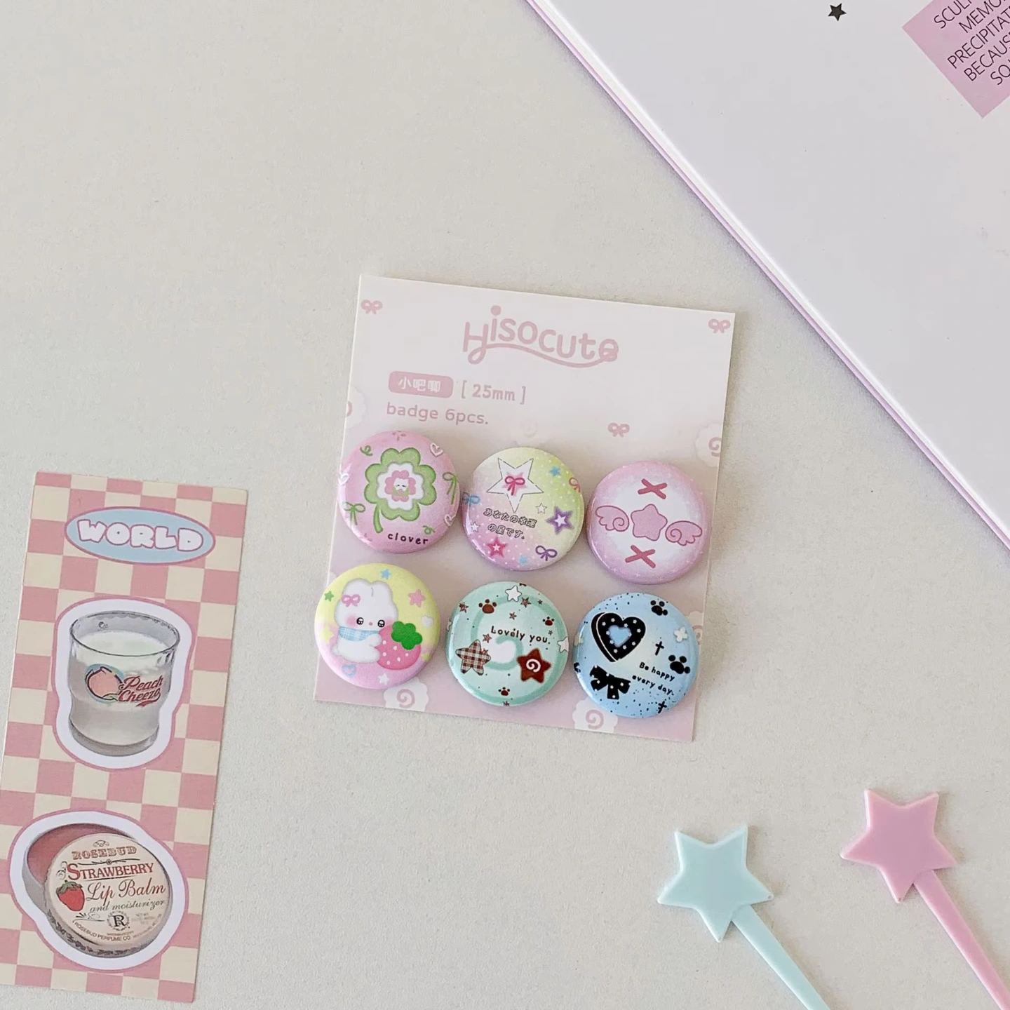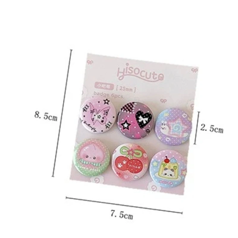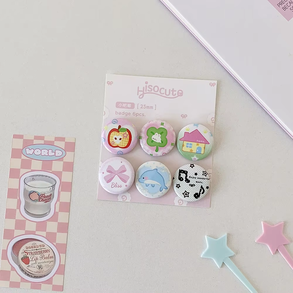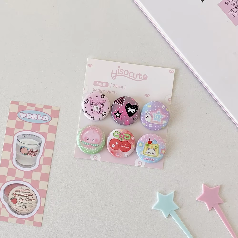 Feature highlights:This 6-piece set of 25mm enamel pins features retro cute cartoon designs, perfect for adding a touch of Y2K aesthetic to bags and clothes. Made with metal handicraft techniques, these round-shaped badges are versatile for gifting, souvenirs, or outdoor use. Their art-inspired design suits all seasons and occasions, offering both style and functionality.