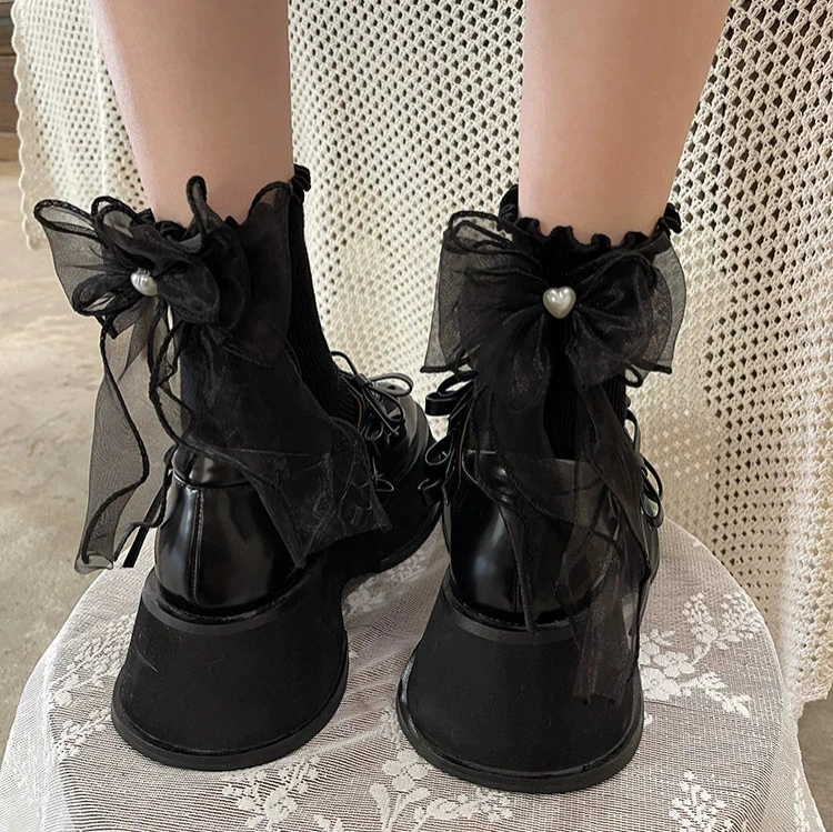Double layer black mesh bow socks