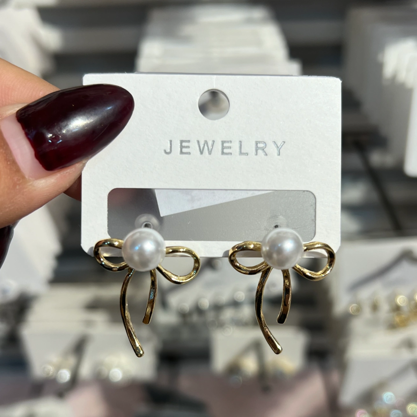 Gold-tone bow pearl earring
