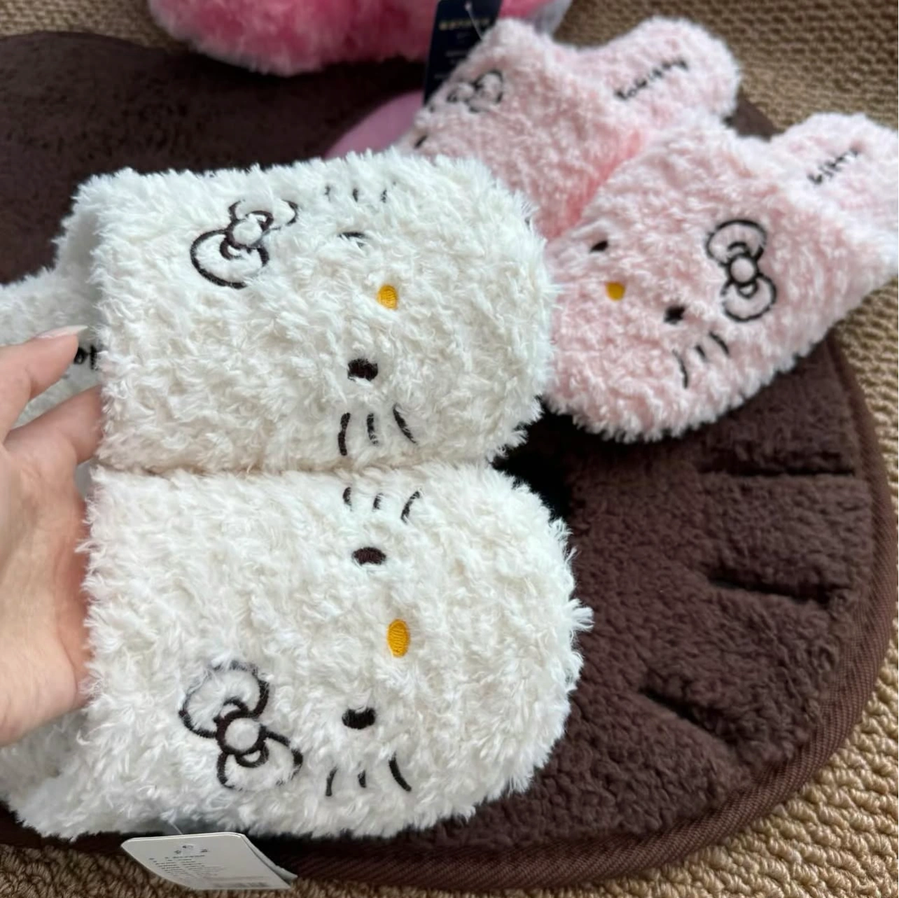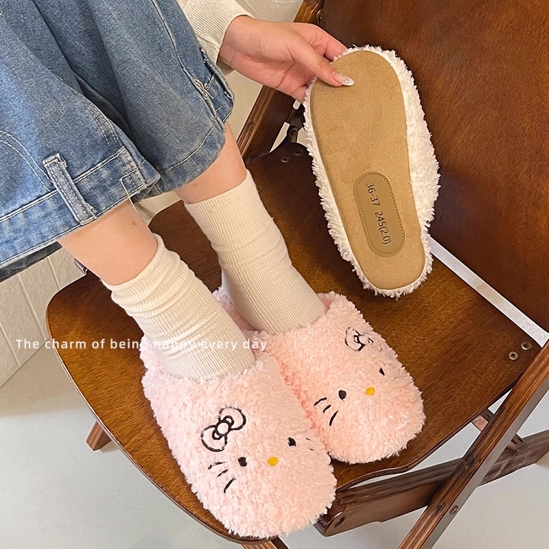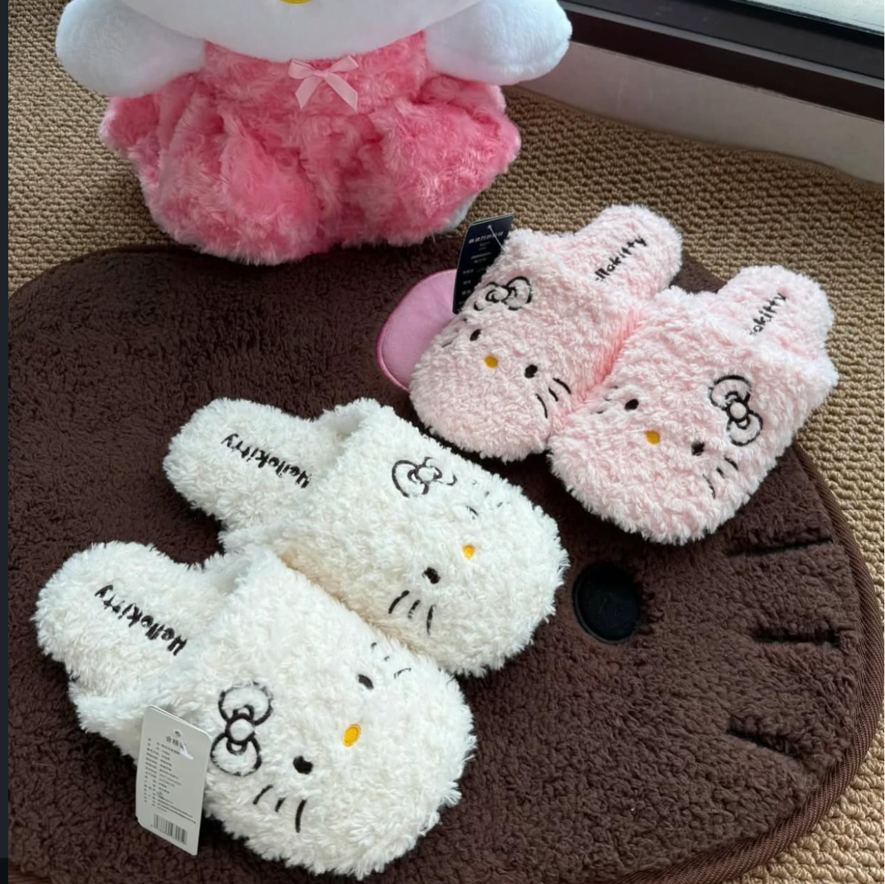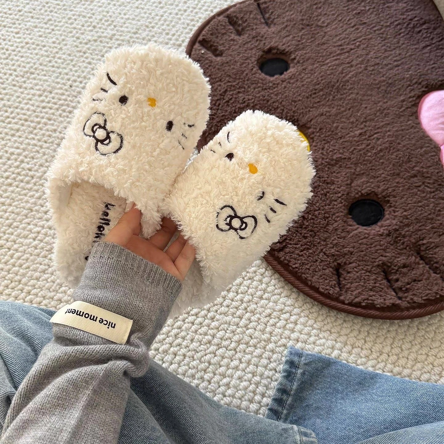 Hello Kitty Unique Design Soft Cute Home Slippers Women Winter Thick Bottom Anti Slip Plush Slippers Trend New Warm fluffy Shoes