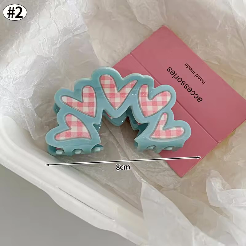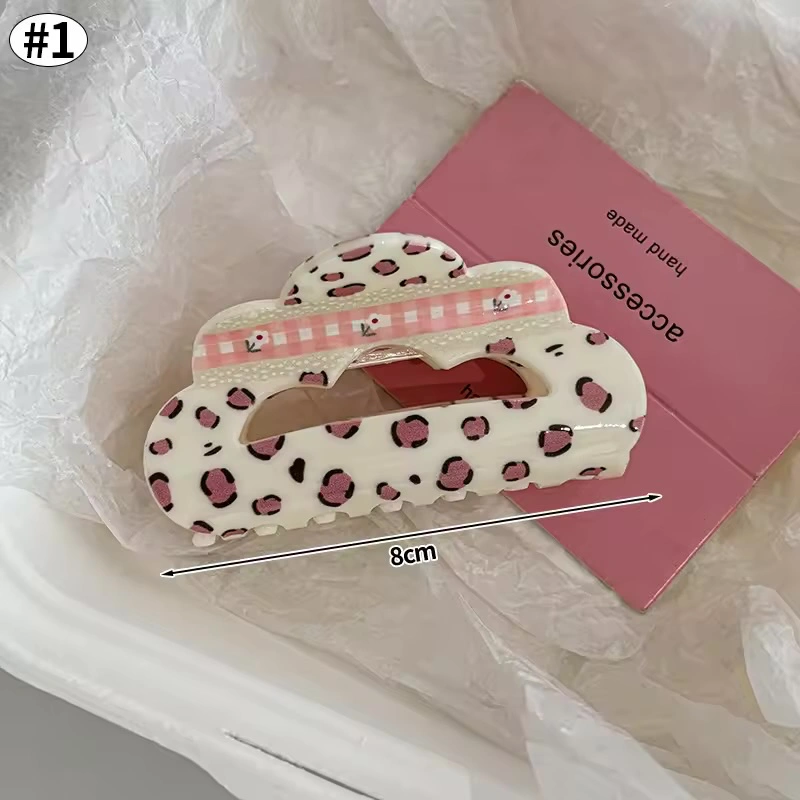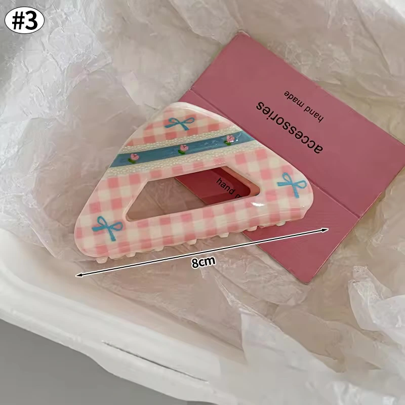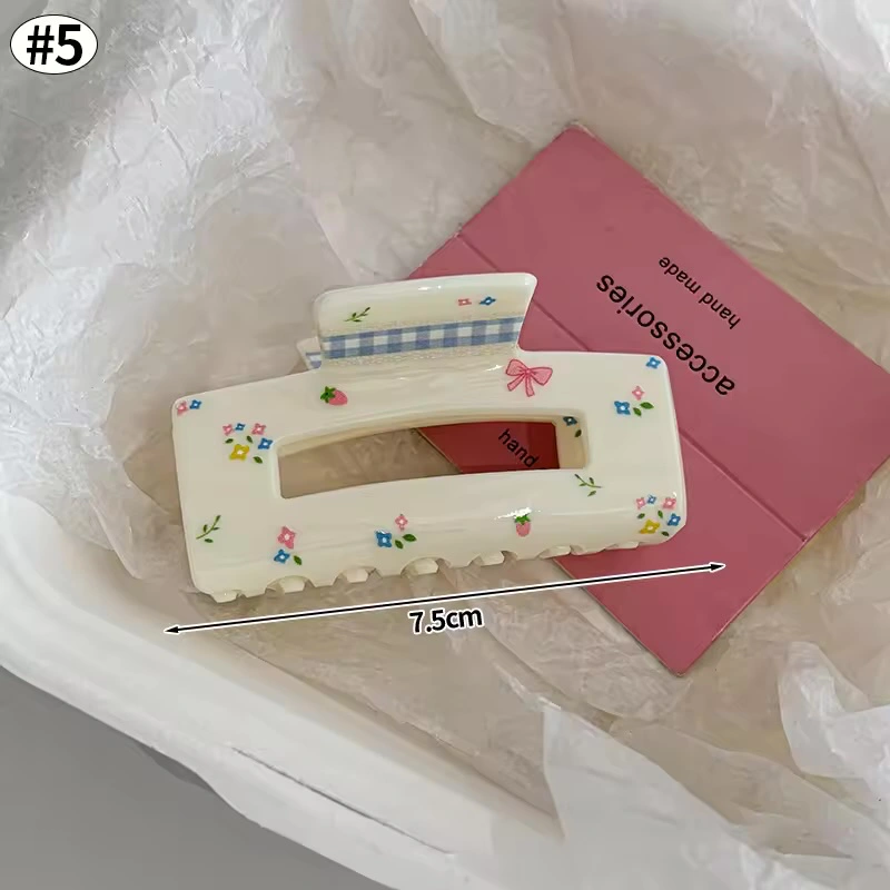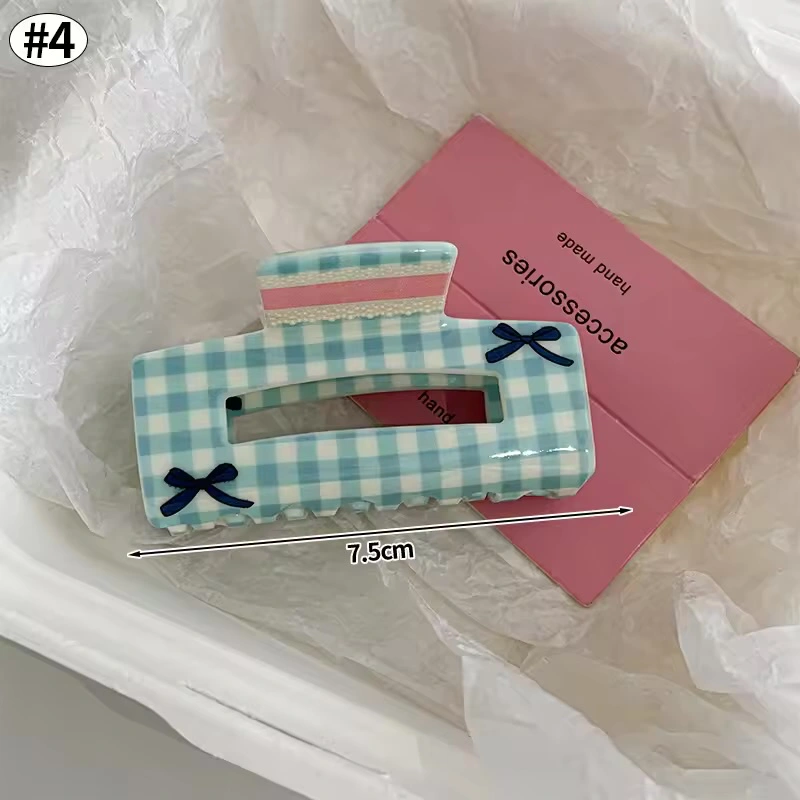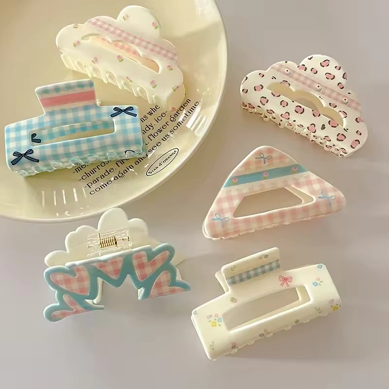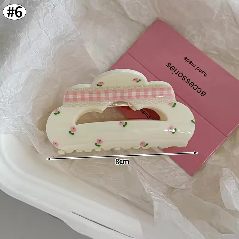 1PCS Acrylic Shark Clip Girl Cream Collection Floral Check Bow Grab Clip Hairpin Back Head Plate Hair Clip Hair Ornament