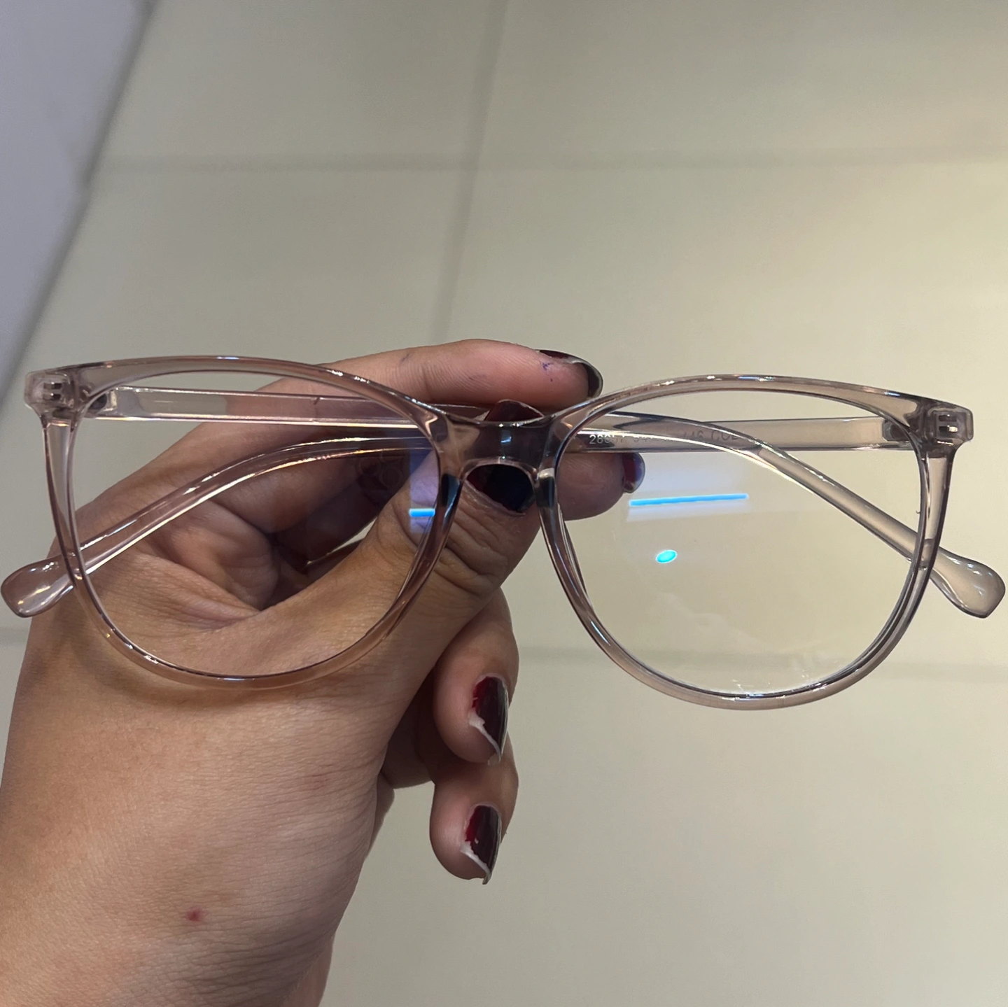 A pair of anti-blue light glasses with a light pink or transparent frame and "Cliff Blue Safe" UV lenses. The lenses block harmful blue light and provide UV protection, which can reduce eye strain and glare from digital screens.