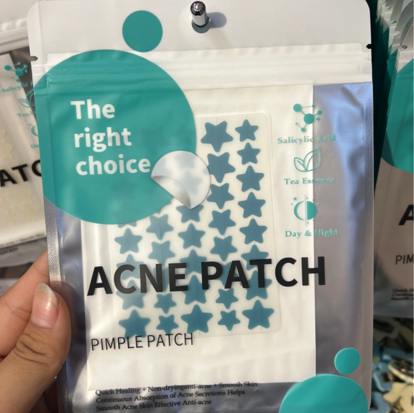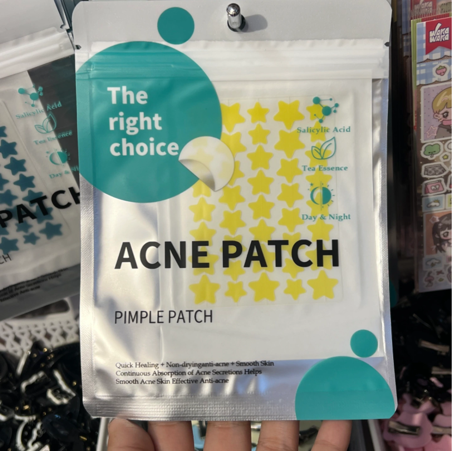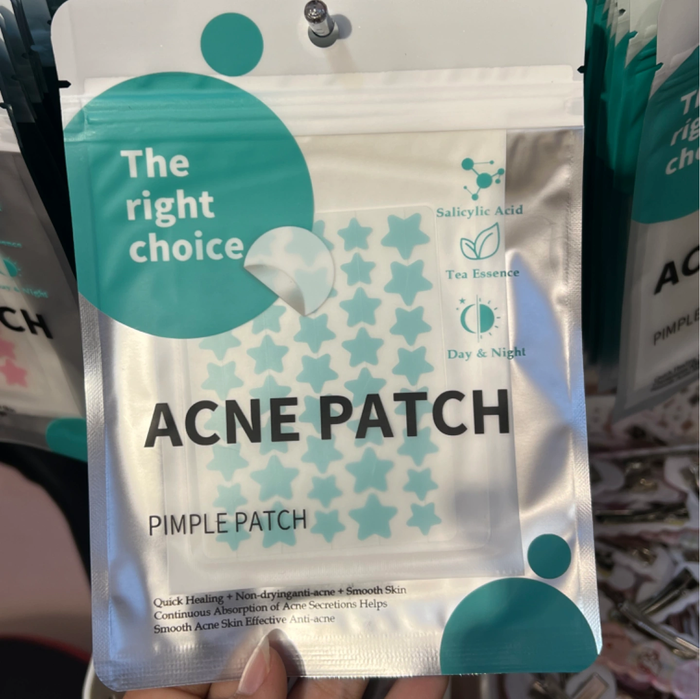 Cover and protect blemishes with these star-shaped pimple patches that help to absorb impurities and promote faster healing. Each star-shaped patch not only covers blemishes with style but also delivers active ingredients like salicylic acid and tea tree oil directly to the affected area, soothing irritation and reducing redness overnight. Absorbs Impurities: Helps to absorb impurities and promote faster healing Active Ingredients: Delivers salicylic acid and tea tree oil directly to the affected area Soothes Irritation: Soothes irritation and reduces redness overnight Effective Treatment: Provides an effective treatment for blemishes Hands-Off Healing: Prevents touching and picking at pimples, promoting cleaner and faster recovery Protect with style: Cover blemishes with star-shaped pimp