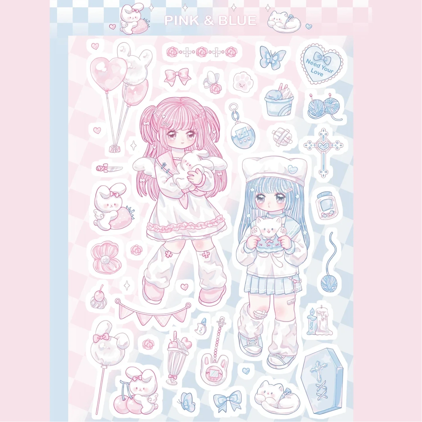 Pink and blue sticker