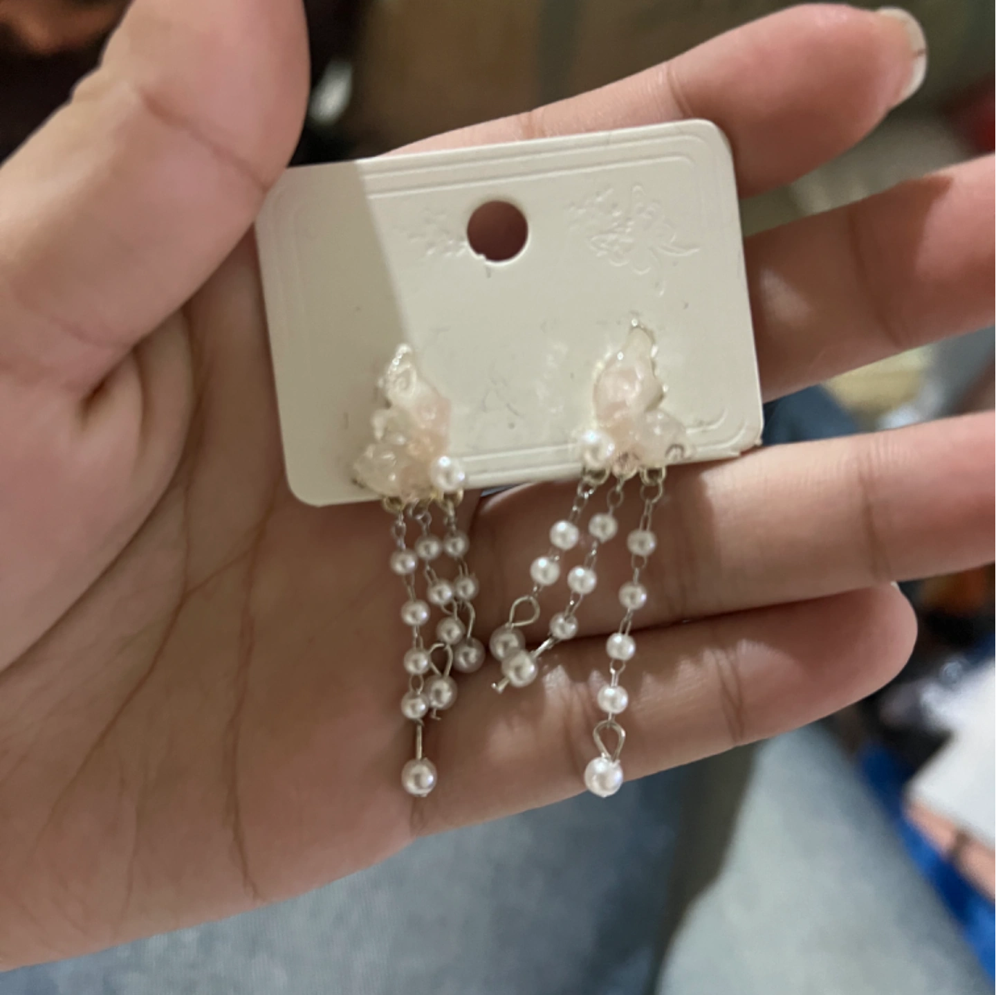 Pink pearl dangle earring