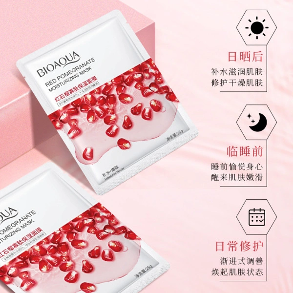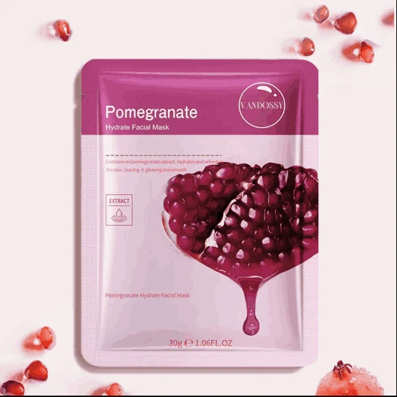 Pomegranate Moisturizing Sheet Mask adds instant moisture to your skin. It helps dry skin feel soft, fresh, and smooth. This face mask is gentle, easy to use, and works well for all skin types. Whether your skin is oily, dry, or sensitive, the mask helps balance and hydrate it without any irritation.
