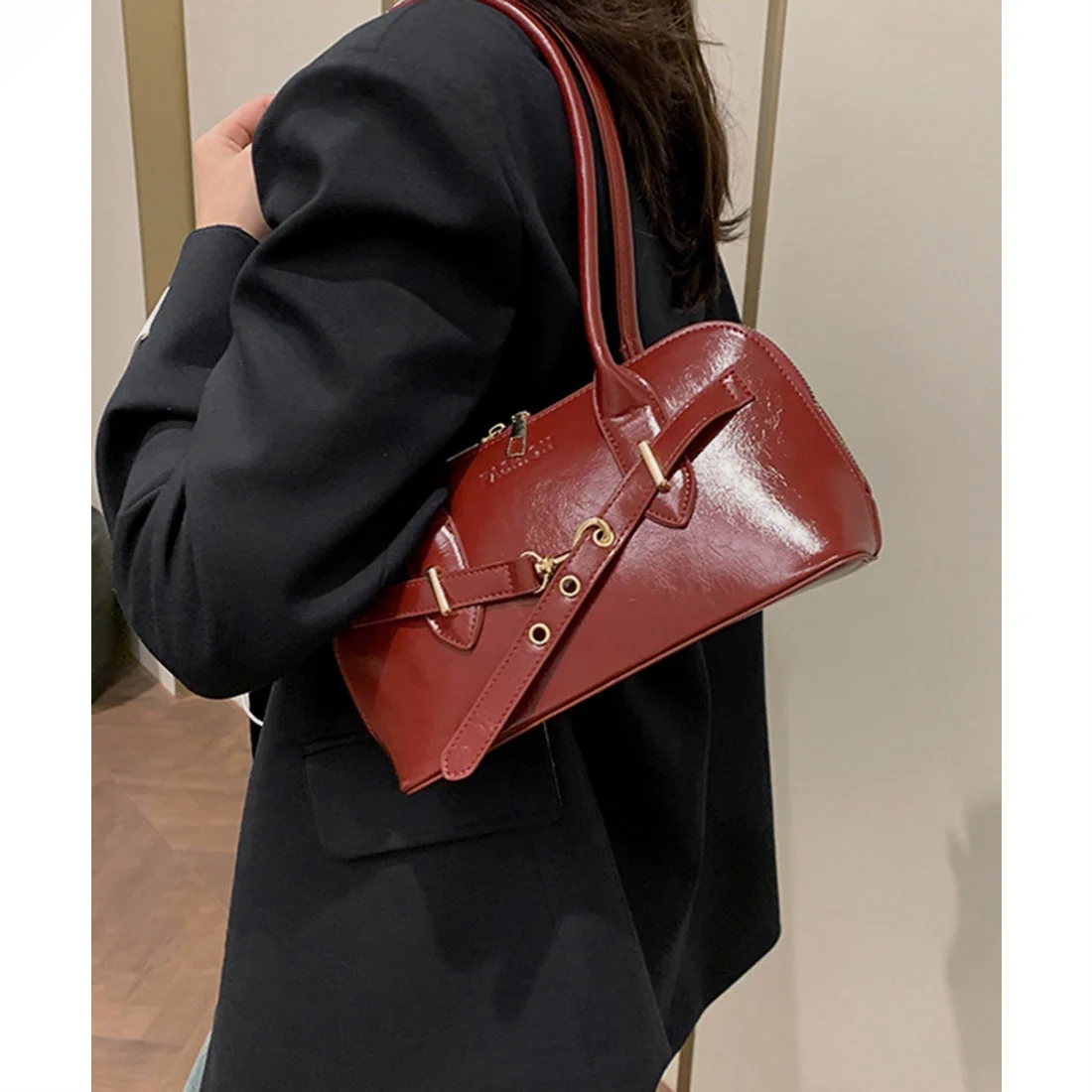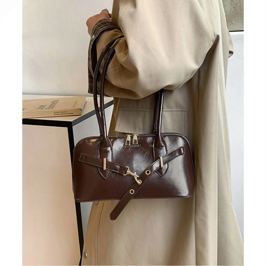 Retro PU Leather Solid Color Underarm Bags for Women Y2K Trend Ladies Shoulder Bag Females Handbags and Purses Tote Bag