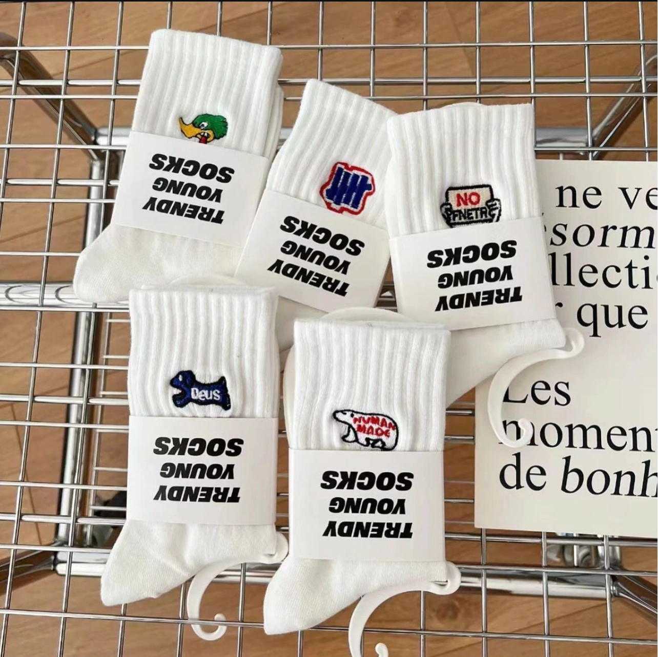 Ribbed crew length socks