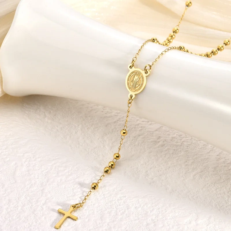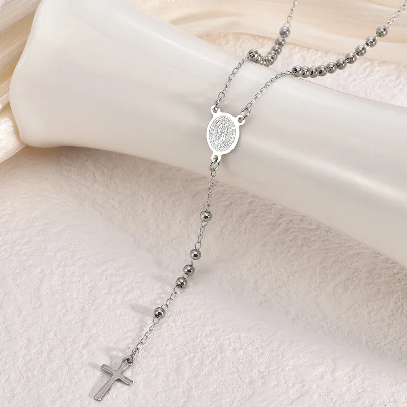 Dainty stainless steel rosary necklace