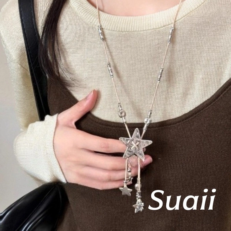 Silver beaded star dangling necklace