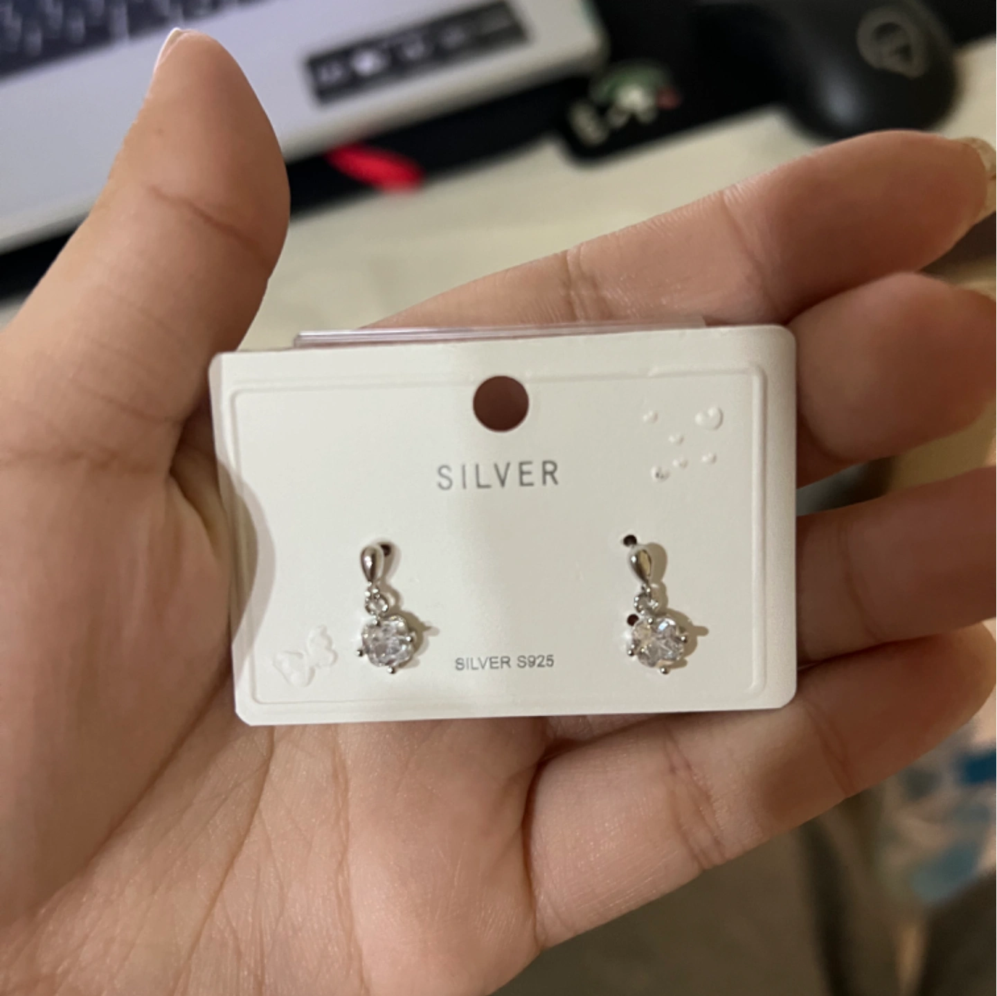 Silver diamond drop earring