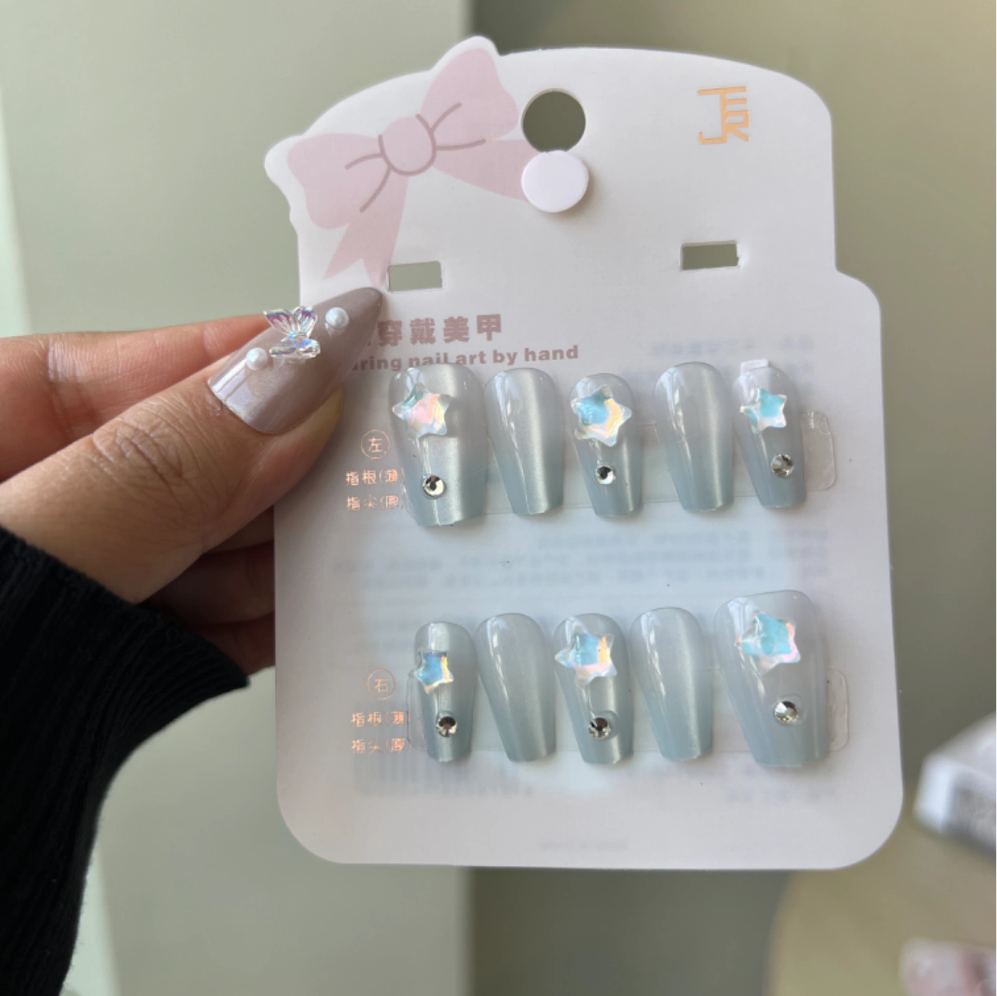 Kawaii shiny blue with star charm press on