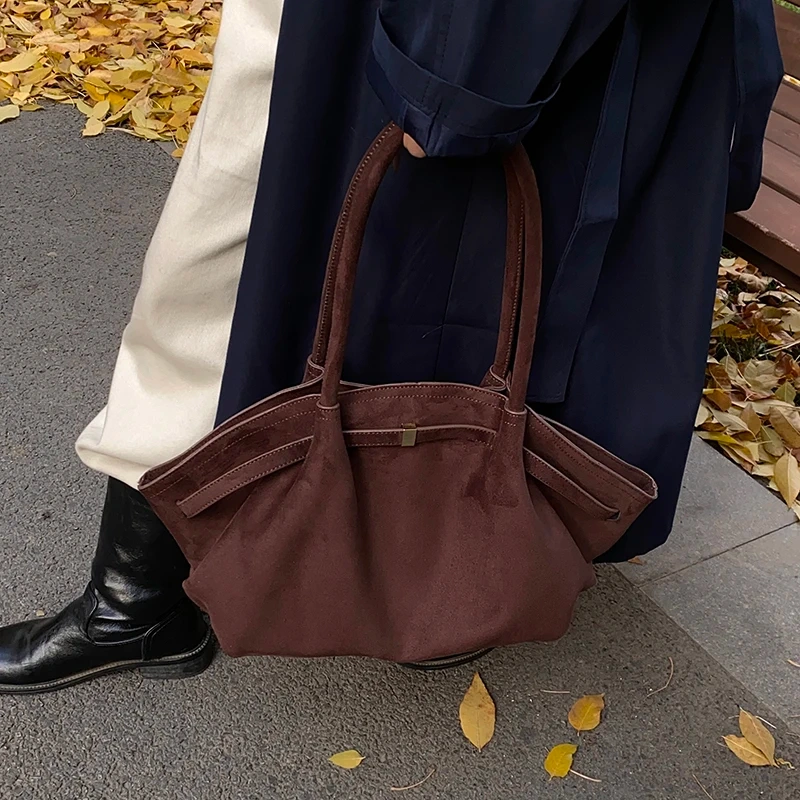 Suede curveline shoulder bag