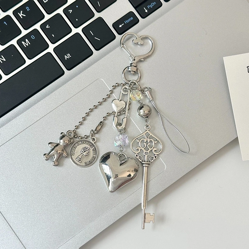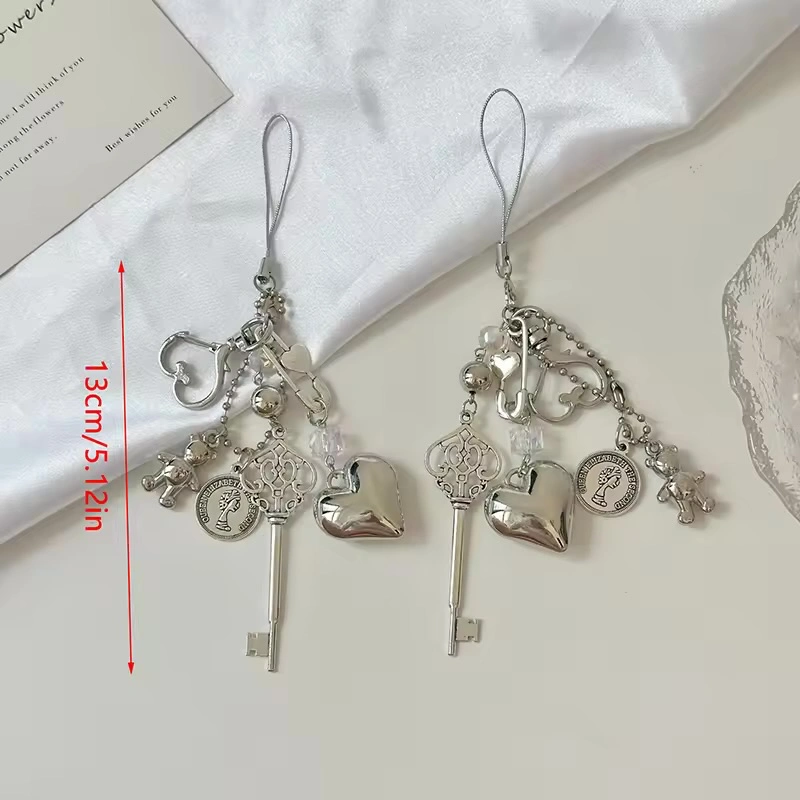 Y2k Silver Heart Keychain Sweet Cool Phone Chain Charm Fashion Simple Bag Pendant Keyring All-matching Bag